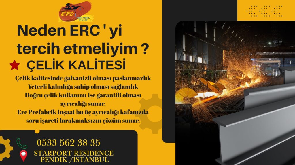 Erc Prefabrik’in sunduğu yapılar, çelik taşıyıcı sistemleri sayesinde yüksek dayanıklılık sağlarken, ileri seviye yalıtım uygulamaları ile dört mevsim konfor sunuyor.