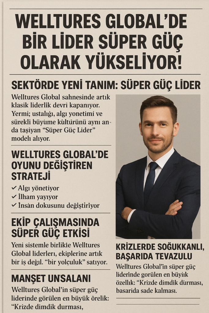 Welltures Global çatısı altında lider olmak, yalnızca iş yönetmek değil; bilgi, algı ve etkiyi bir araya getiren bir süper güç sahibi olmaktır. Sektörde fark yaratmak ve kalıcı bir iz bırakmak isteyenler için bu yolculuk, adım adım inşa edilen bir süreçtir.